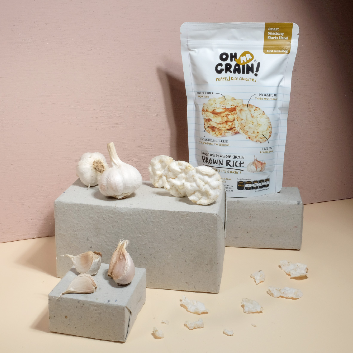 Oh Ma Grain! Sea Salt is popped rice crackers which are made from a mixture of organic brown and white rice. It's neither fried nor baked, but POPPED.